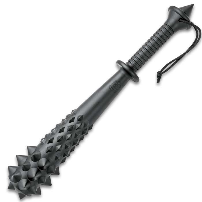 20" Night Watchman Polypropylene Tactical Mace Spiked Pommel. Designed specifically for law enforcement agencies, a deterrent you can count on when you’re facing the toughest situations The tactical mace has a solid, one-piece injection-molded polypropylene construction and features deterrent spikes The ridged handle gives you a no-slip grip and the paracord lanyard assures that you keep control of it when using The 20” overall law enforcement mace also features a glass-breaker on the pommel and a weighty heft to it to break the glass
