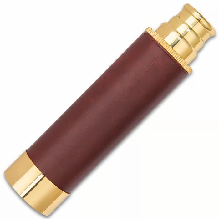 25X30 Classic Collapsible Spy Scope Slide Focus. A precision crafted brass telescope useful for bird watching and landscape observation, as well as, making a stunning addition to your library or office decor Fully coated glass lenses and BK-7 prisms transmit bright contrast-rich images, making this spyscope beautiful to look through It is a 25x monocular with a 30 mm objective and a FOV of 105 ft at 1,000 yds, plus, a close focus distance of 20 ft The slide focus telescope has a polished brass finish with a leather wrap with a collapsible eyepiece for compact storage It comes in a premium brown leatherette, zippered case with a lanyard for protective storage and ease of carry