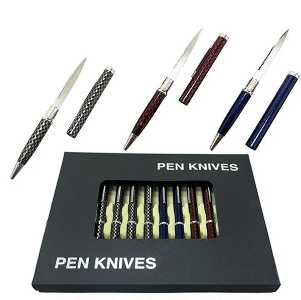 5.4" Overall Elegant Executive Carbon Fiber Red Coating Letter Opener Pen Knife. These popular high quality executive pens are expensive looking but they have a little surprise inside. Pull it apart to reveal a 2.5 inch blade. Carry one yourself for self protection and as a conversation piece. Use them as a working pen when you need one but you know you have security right in your pocket. Its great for letter opening. The pen measures 5.4 inch. Specifications: Overall Length: 5.4 Inches Blade Length: 2.5 Inches Color: Red Ink Color: Black