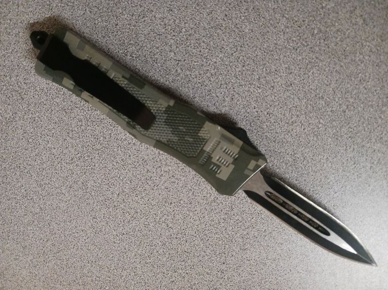 6.5" Delta Force Digital Camo D/A OTF Automatic Knife Dagger Point Two Tone Plain. 6.5 inches total length 2.5" 440 stainless steel blade. comes with pocket clip, glass breaker and a belt sheath. This is old stock we found laying around. Very limited stock.