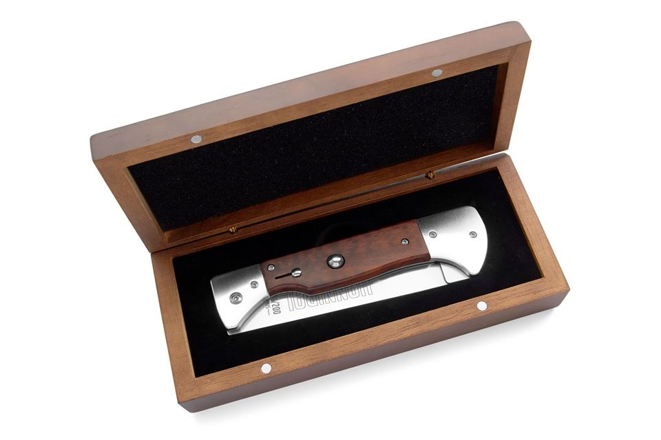Hannibal A.G.A. Campolin: the first automatic BBQ knife! Born for lovers of automatic knives and stilettos, Hannibal is a unique collector’s item — and also perfect for those who want to impress at a barbecue. Inspired by the classic BBQ knife — with a long blade at the base to keep hands away from the heat — Hannibal redefines the concept with a push-button automatic opening and safety lock, plus a secure liner lock closing system. It’s the only knife on the market that combines both automatic and gravity-assisted opening. The blade, about two-thirds the length of the knife and finely sharpened, offers an unmatched blend of practicality and visual impact. The kick spring is a two-piece design, like the vintage switchblades. Its thick and sturdy spring measures an impressive thickness of 6mm. Be careful when closing the knife. It has a double liner lock: the first without the lock, then with the second 'fold' of the blade, the two parts of the blade lock into the handle. Watch the video carefully. The 2025 first edition is limited to just 600 individually numbered pieces, divided among three exclusive models: Snake Wood, Ebony Wood, and Imitation Ivory. Each version is numbered from 001/200 to 200/200. Every Hannibal comes with a certificate of authenticity and a box made of fine wood. An absolute must-have for every collector — or for anyone looking to turn their BBQ into a true spectacle! Overall lenght: 34.1cm – 13.4" Blade Lenght: 20 cm – 7.87" / sharp 9cm - 3.5" Blade Thickness: 0.3 cm – 0.11" Blade Material: Stainless steel Handle Material: Imitation Ivory Weight: 315 gr- 11.11 oz