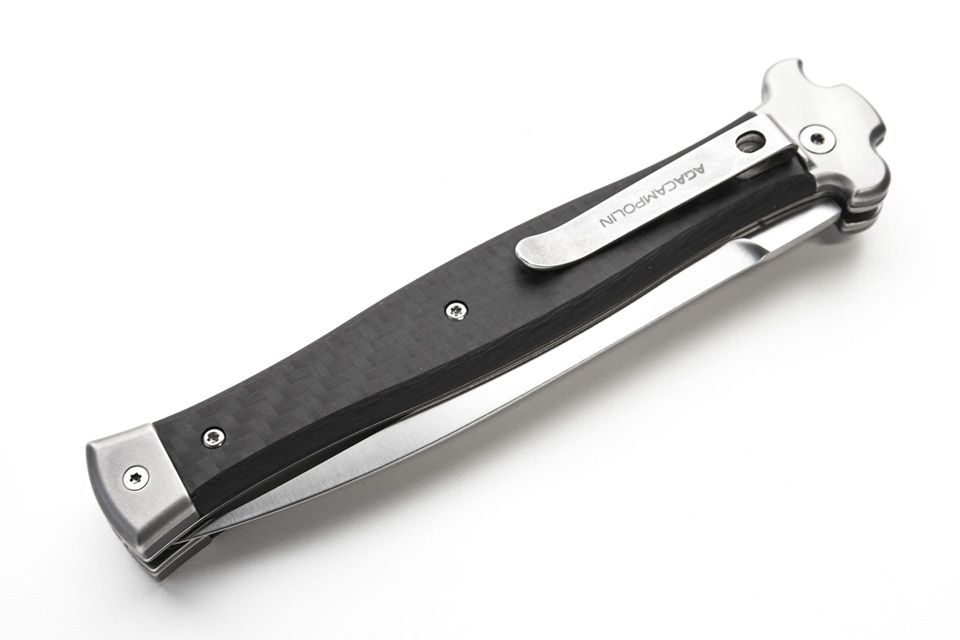 ZERO+ is a modern stiletto with leverlock mechanism and is the longest leverlock available!! It has a M390 stainless steel dagger blade with satin finish and a solid AISI 430 steel glass blasted bolster. The double spring gives faster action and guarantees longer durability. The inverted lever gives a quick opening action. The handle is made of carbon fiber. The stainless steel pocket clip can be easily removed and replaced with a steel shield. ZERO+ is covered by 1 year warranty from the original end user's purchasing date. Overall length: 26cm - 10.25" Blade length: 12cm - 4.7" Blade thickness: 3.5mm - 0.14" Weight: 215g - 7.6oz Blade material: N690Co Stainless Steel Handle material: Carbon Fiber Made in: Italy