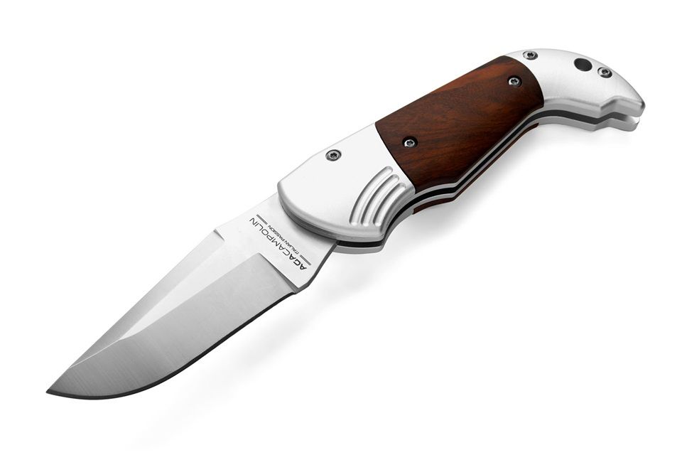 AGA Campolin Alex Snake Wood Hidden Release Italian Automatic Knife. Alex is the new knife from the A.G.A. Campolin line. It represents a modern reinterpretation of a historic folding and fixed-blade hunting knife produced by Angelo Campolin Sr. in the 1980s/1990s under the Falcon brand. The new version is available with automatic spring opening via the “bolster release” mechanism, a technical solution that beautifully combines tradition with modern evolution. The ergonomic handle and the large blade ensure solidity, reliability, and excellent performance, making Alex ideal both for hunting and as an EDC (everyday carry). The aluminum bolsters guarantee construction precision, exceptional robustness, and a contemporary aesthetic. This version features a snake wood handle and a satin-finished blade in 440B steel. Alex is the perfect expression of the encounter between Campolin history, modern technology, and Italian design. Overall lenght: 18.0cm – 7.1" Blade Lenght: 6.5 cm – 2.56" Blade Material: Stainless steel 440B Handle Material: Snake wood Weight: 120 gr- 4.23 oz
