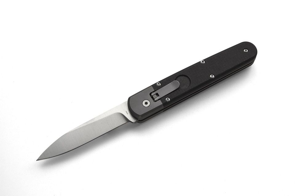 AGA Campolin Automatic Leverlock Baron Elite Limited Edition Titanium Knife Carbon Fiber Satin. We are excited to present you the latest switchblade from the italian knifemaker company A.G.A Campolin the Baron Elite. This automatic knife is the modern evolution of the Baron build with the same leverlock mechanism like the successful "Zero". This Baron Elite is a Limited Edition of 100 pieces made in 02/2023. It features a satin finished Böhler M390 stainless steel drop point blade. The handle on this switchblade is made of carbon fiber 3D scales, it has black titanium bolsters and liners, the clip and srews are sandblasted titanium. The springs are very easy to replace and the Baron Elite Limited Edition comes with an extra spring in the carbon paper box and certificate. Overall length: 20cm - 7.9" Blade length: 8.5cm - 3.3" Weight: 190g - 6.7oz Blade material: Böhler M390 Stainless Steel Handle material: Carbon Fiber Made in: Italy