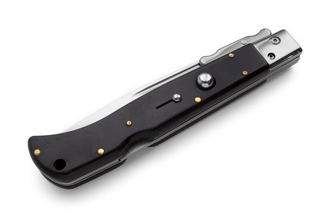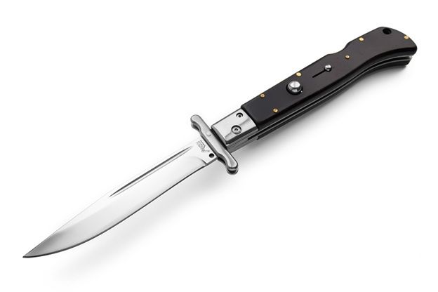 AKC 11" Roma Automatic Swinguard Ebony Wood. 11 inches overall length 4.5" blade length stainless steel. A big heavy automatic knife from italy. These are getting very rare and hard to get. Get yours before they are all gone forever. ROMA is a new swinguard from AKC World is a new line of italian knives designed in Italy. These are excellent quality knives with Italian style. Very nice shape and good mechanism. Nice for any collection but also as fancy pocket knife. Price quality range is very good. Overall lenght: 28cm – 10,90" Blade Lenght: 11,7cm – 4,60" Blade Thickness: 0,3cm – 0,11" Weight: 195gr - 7oz Blade Material: AISI 420 stainless steel Handle Material: Ebony Wood Frame material: AISI 420 stainless steel Made in: China