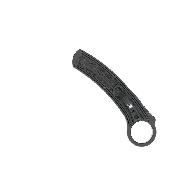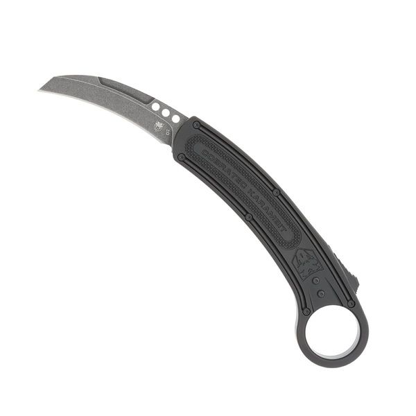 CobraTec Black Karambit Auto, 2.75" D2 Blade, Aluminum Handle. The CobraTec Karambit is a fully automatic double action OTF designed with carry and deployment in mind. All CNC construction makes for a precision fit and finish inside and out. The thumb activation switch conveniently located by the retention ring makes for ease in deploying the D2 steel stonewashed blade during the reverse grip draw. The CobraTec Karambit is very durable, lightweight and is very comfortable in the hand offering RH and LH carry. All CobraTec Knives are backed by our LIFETIME WARRANTY. 4.0 ounces Double Action 2.75 inch D2 Stonewash Steel Blade 5.875 inch Anodized 6061 T6 Aluminum Handle 8.375 inches in total length Retention ring allows for a secure and unbreakable grip