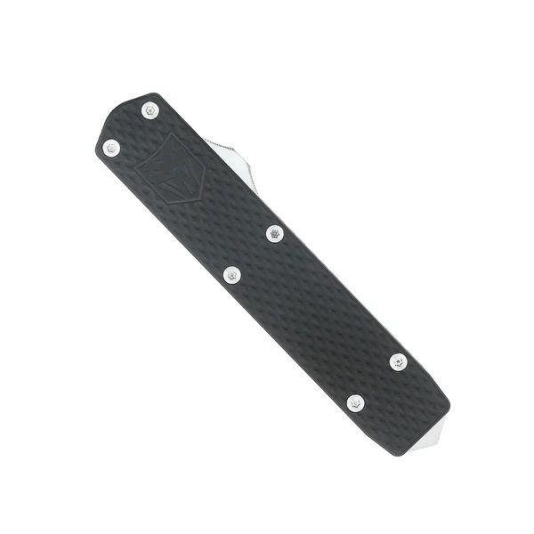 CobraTec Cali Mini Black Mamba Gen II Auto, 1.99" D2 Blade, Aluminum Handle. CobraTec Cali Mini Black Mamba Gen II Auto, 1.99" D2 Blade, Aluminum Handle. Our California compliant Mini Mamba Gen II features a light stonewashed 1.99 inch blade. The black handle is CNC machined out of 6061 T6 Aviation Aluminum. This knife features a pocket clip and includes a nylon sheath. All CobraTec Knives are backed by our LIFETIME WARRANTY. 1.5 ounces Dual Action OTF 1.99 inch D2 Steel Blade 3.375 inch Aluminum Handle 5.365 inches in total length including glass breaker
