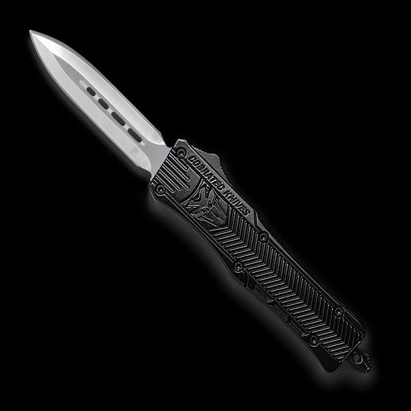 CobraTec CTK-1 D/A OTF Auto, 2.75" D2 Dagger Blade, Aluminum Handle Black. CobraTec Black CTK-1 double action OTF Knife. The CTK-1 is one of the best out the front knife (OTF) for general use and a great choice as your everyday carry. The handle is designed from high-grade aluminum alloy and features a D2 steel blade. The knife is ambidextrous as the pocket clip can be switched to either side of the handle, depending on your preference. This OTF knife features a pocket clip, a glass breaker for emergencies and includes a nylon sheath. All CobraTec OTF knives are backed by our LIFETIME WARRANTY. 4.5 ounces Dual Action OTF 2.75 inch D2 Steel Blade 4.25 inch high-grade Aluminum Alloy handle 7 inches in total length with glass breaker