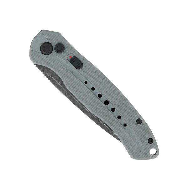 The Diablo push button automatic is a high-quality knife designed for precision and reliability. It features a rugged G10 handle that provides excellent grip and durability in various conditions. The blade is crafted from D2 steel, known for its exceptional edge retention and toughness, and it is finished with a black stonewash that not only enhances its appearance but also adds resistance to wear and corrosion. For added safety, this knife includes a sliding safety switch to prevent accidental discharge, ensuring that the blade only deploys when you intend it to. Whether you need a dependable tool for everyday carry or outdoor adventures, the Diablo delivers both performance and peace of mind. All CobraTec Knives are backed by our LIFETIME WARRANTY. Diablo Specifications: Side Switch Safety Switch to prevent accidental discharge Blade: D2 stonewashed Weight: 4 0z Blade Length: 3.5 inches Handle Length: 4.75 inches Overall Length: 8.25 inches