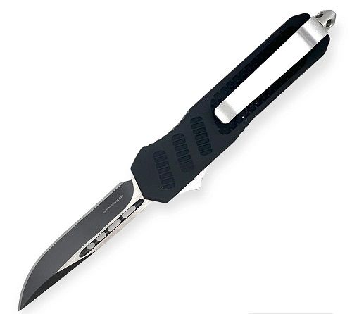 Delta Force 7" Black D/A OTF Automatic Knife Drop Point. Weighs 5.50 oz. 7.0 inches overall length. - 2.5 inches long handle. width .75 inch Free Nylon Sheath