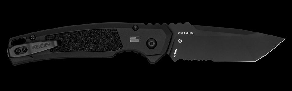 Kershaw Launch 16 Automatic Knife Black 6061-T6 Aluminum (3.45" BC). Enter the tactical cutting world with the Launch 16, featuring a partially serrated tanto blade and extremely high edge retention. This automatic opener withstands the toughest cutting tasks with a thick blade profile and high-end M4, a balanced super steel with superior hardness and toughness. The tanto blade shape is ideal for piercing cuts, and the partially serrated edge will easily saw through rope. Trac-Tec handle inserts, oversized jimping, and a finger choil offer a secure grip. This push-button rocket is all stealthy with a black anodized handle and a black Cerakote blade. Carry it comfortably on the go with a reversible deep-carry pocket clip. While discreet, the Launch 16 also makes a lot of noise with a standout blade and unbeatable ergonomics. Made in the USA; tactical work knife with partially serrated tanto blade Black anodized aluminum handle; Trac-Tec inserts, oversized jimping, and finger choil for extra security Premium CPM M4 blade steel excels at edge retention, toughness, and hardness; black Cerakote coating helps prevent corrosion Low-profile push button makes it harder for blade to accidentally deploy; deep-carry pocket clip is easily reversible for left/right carry. Features + Details Edition Engravable Use Tactical Type Automatic, Folder Style Pocketknife Designer Kershaw Originals Blade Style Tanto Blade Edge Partially Serrated Opening Action Automatic Opens With Push button Lock Type Push-button lock Pocketclip Reversible deep-carry (right/left, tip-up) Handle Color Black Hardware Black-oxide steel tube spacer, black-oxide screws Country of Origin USA: Design, Prototype, Quality Control, Manufacture Warranty Limited Lifetime Warranty Specifications Blade Length 3.45 in. (8.8 cm) Blade Material CPM M4 HRC 60-62 Blade Finish/Coating Black Cerakote Blade Thickness 0.16 in. (4.1 mm) Closed Length 4.95 in. (12.6 cm) Handle Material 6061-T6 aluminum, Trac-Tec inserts Handle Finish/Coating Black anodized Handle Thickness 0.55 in. (14 mm) Overall Length 8.4 in. (21.3 cm) Weight 4 oz. (113 g)