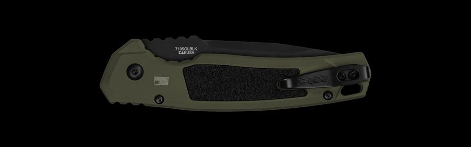 Go plain edge with the Launch 16 – Olive, Black, featuring a versatile tanto blade and extremely high edge retention. This automatic opener withstands the toughest cutting tasks with high-end M4, a balanced super steel with superior hardness and toughness. This auto looks as good as it cuts with an olive Cerakote handle and a black Cerakote blade. The tanto blade shape is ideal for piercing cuts. Even better, the Trac-Tec handle inserts, oversized jimping, and finger choil offer a secure grip. Carry it comfortably on the go with a reversible deep-carry pocket clip. More than a fresh coat of paint, this Launch 16 is a top performer. Made in the USA; plain edge, tactical tanto work knife Olive Cerakote aluminum handle; Trac-Tec inserts, oversized jimping, and finger choil for extra security Premium CPM M4 blade steel excels at edge retention, toughness, and hardness; black Cerakote coating helps prevent corrosion Low-profile push button makes it harder for blade to accidentally deploy; deep-carry pocket clip is easily reversible for left/right carry. Features + Details Edition Engravable Use Tactical Type Automatic, Folder Style Pocketknife Designer Kershaw Originals Blade Style Tanto Blade Edge Plain Opening Action Automatic Opens With Push button Lock Type Push-button lock Pocketclip Reversible deep-carry (right/left, tip-up) Handle Color Olive Hardware Black-oxide steel tube spacer, black-oxide screws Country of Origin USA: Design, Prototype, Quality Control, Manufacture Warranty Limited Lifetime Warranty Specifications Blade Length 3.45 in. (8.8 cm) Blade Material CPM M4 HRC 60-62 Blade Finish/Coating Black Cerakote Blade Thickness 0.16 in. (4.1 mm) Closed Length 4.95 in. (12.6 cm) Handle Material 6061-T6 aluminum, Trac-Tec inserts Handle Finish/Coating Cerakote Handle Thickness 0.55 in. (14 mm) Overall Length 8.4 in. (21.3 cm) Weight 4.1 oz. (116 g)