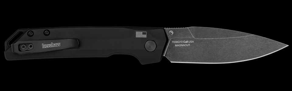 Kershaw Launch Iridium Automatic Knife Black G10 (3.45" BW MagnaCut). The Launch Iridium – G10 blends clean, modern lines with automatic action and upgraded materials. A G10 front handle pairs with an anodized aluminum back, creating an all-black look with subtle textural contrast. The MagnaCut blade’s BlackWash finish adds style while hiding scratches, and a custom pivot with black anodized backspacer and lanyard hole completes the build. This Launch auto deploys with a press of the low-profile button for fast, reliable action. From premium materials to precision-tuned performance, the Launch Iridium – G10 is made for those who demand an American-made automatic that works as well as it looks. USA-made automatic knife with MagnaCut blade steel and BlackWash™ finish Smooth G10 front scale; black anodized aluminum back handle Custom pivot and black anodized backspacer with lanyard hole Low-profile push button helps prevent accidental deployment; deep-carry pocketclip is easily reversible for left/right carry. Features + Details Status Bestseller Edition Engravable Use Everyday Type Automatic, Folder Style Pocketknife Designer Kershaw Originals Blade Style Spear Point, single edge Blade Edge Plain Opening Action Automatic Opens With Push button Lock Type Push-button lock Pocketclip Reversible deep-carry (right/left, tip-up) Handle Color Black Hardware Black-oxide handle screws, black-oxide pivot screw, black Cerakote pocketclip Country of Origin USA: Design, Prototype, Quality Control, Manufacture Warranty Limited Lifetime Warranty Specifications Blade Length 3.45 in. (8.8 cm) Blade Material CPM MagnaCut HRC 62-64 Blade Finish/Coating BlackWash™ coating Blade Thickness 0.125 in. (3.2 mm) Closed Length 4.55 in. (11.6 cm) Handle Material G10 front, 6061-T6 aluminum back Handle Finish/Coating Black anodized back Handle Thickness 0.48 in. (1.2 mm) Overall Length 8 in. (20.3 cm) Weight 2.9 oz. (82 g)