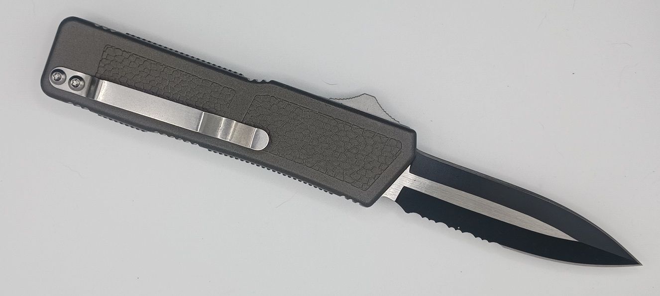 Lightning Supreme Gray D/A OTF Automatic Knife Dagger Point Two Tone Serrated