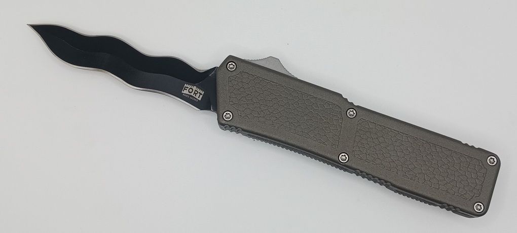 Lightning Supreme Gray D/A OTF Automatic Knife Kris Point Black Plain. The Gray Lightning Supreme has an 8 inch total length with a 3.25 inch blade. It is a double action in and out switchblade knife. This is a taiwan version. The taiwan version was the first produced before the chinese versions came out. This version has aircraft aluminum handles and better made metal blades. The springs in these are made better than the chinese versions. It comes with a pocket clip which can be taken off.