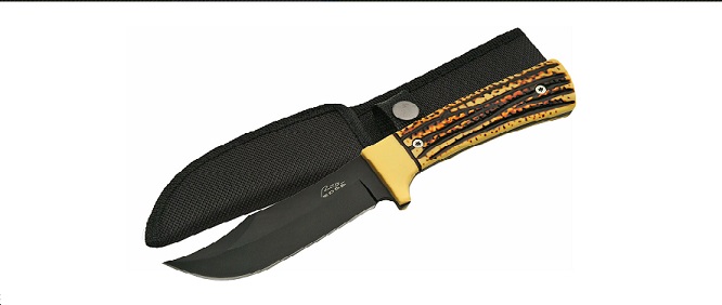 Rite Edge 9.5 Inch Full Tang Faux Bone Hunting Knife Black Drop Point. 5 inch stainless steel blade and comes with a belt sheath. These are well built knives for the price and make great gifts!