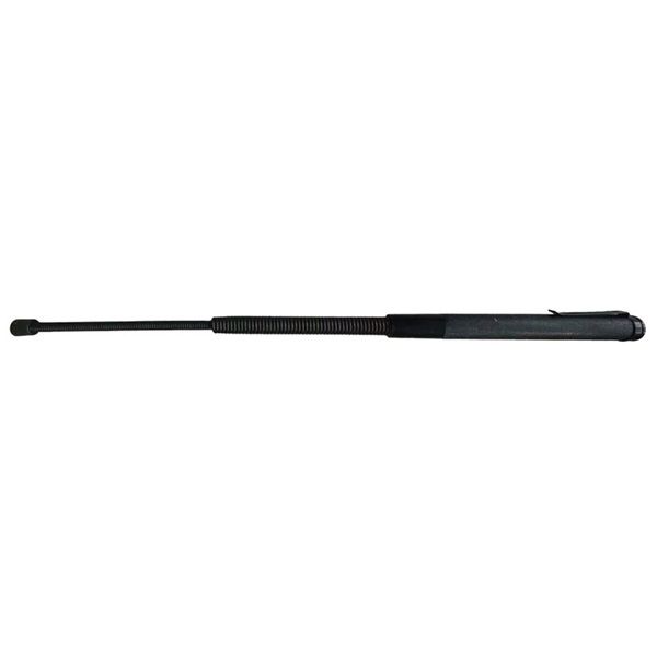 Spring Coil 21" Expandable Baton. Stainless Steel Spring Coil Baton expands from 8.25 inches to 21 inches. The RapidDeploy 21" Expandable Spring Baton is engineered for reliability and quick response. This baton features a sturdy black coil stainless-steel construction that extends to a full 21 inches, providing an impressive reach. The handle is crafted from black stainless steel with a textured grip, measuring 8.25 inches and equipped with a pocket clip for secure carry. It also includes a durable nylon pouch for additional carrying options. Specifications: Material: High-strength black coil stainless steel. Grip Handle: 8.25" with a textured pattern for a non-slip hold and a built-in pocket clip. Extension: Expands to 21" for optimal reach and defensive capability. Storage: Comes with a convenient nylon pouch for safekeeping and transport. With its easy deployment and compact size when retracted, the RapidDeploy Baton is an essential tool for security professionals and individuals seeking a dependable self-defense instrument.