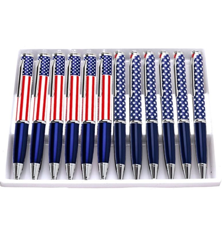 12 Pcs American Flag Letter Opener Pen Knife Set 2 Assorted Designs. These popular high quality American Flag design executive pens are expensive looking but they have a little surprise inside. Pull it apart to reveal a 2.5 inch blade. Carry one yourself for self protection and as a conversation piece. Use them as a working pen when you need one but you know you have security right in your pocket. Its great for letter opening. These one dozen refillable pen and letter opener comes in 2 Designs. You will receive 6 of each Designs. These pen measures 5.4 inch. Specifications: Overall Length: 5.4 Inches Blade Length: 2.5 Inches Ink Color: Black