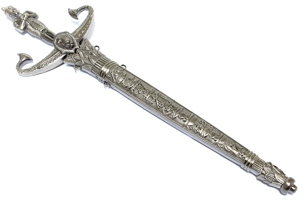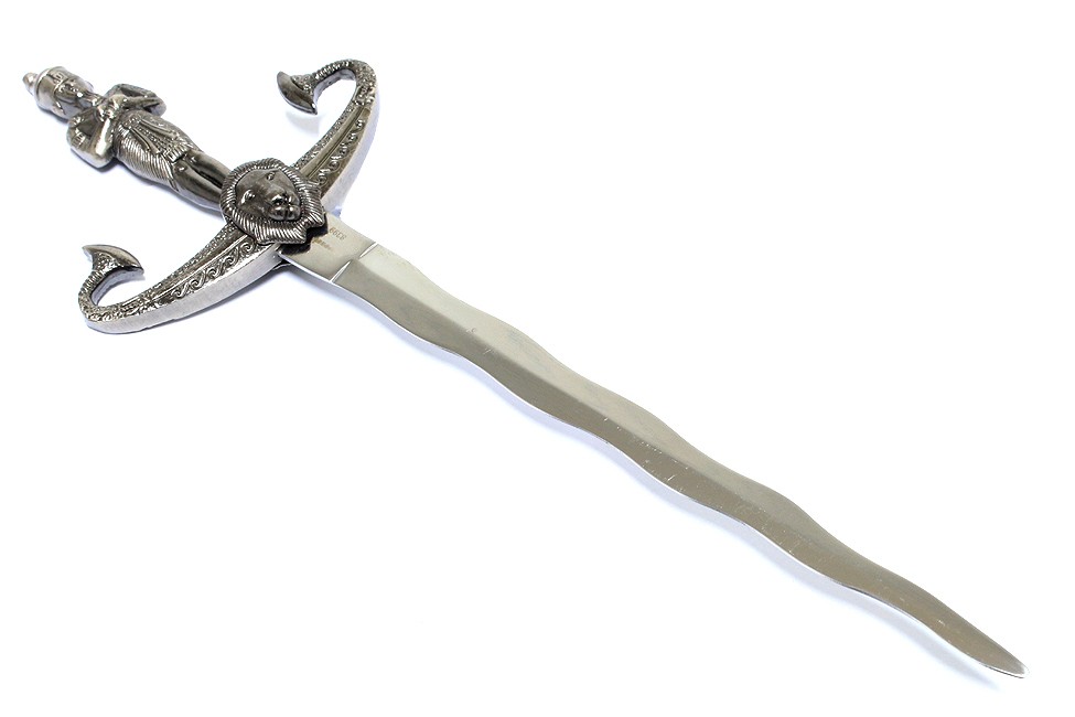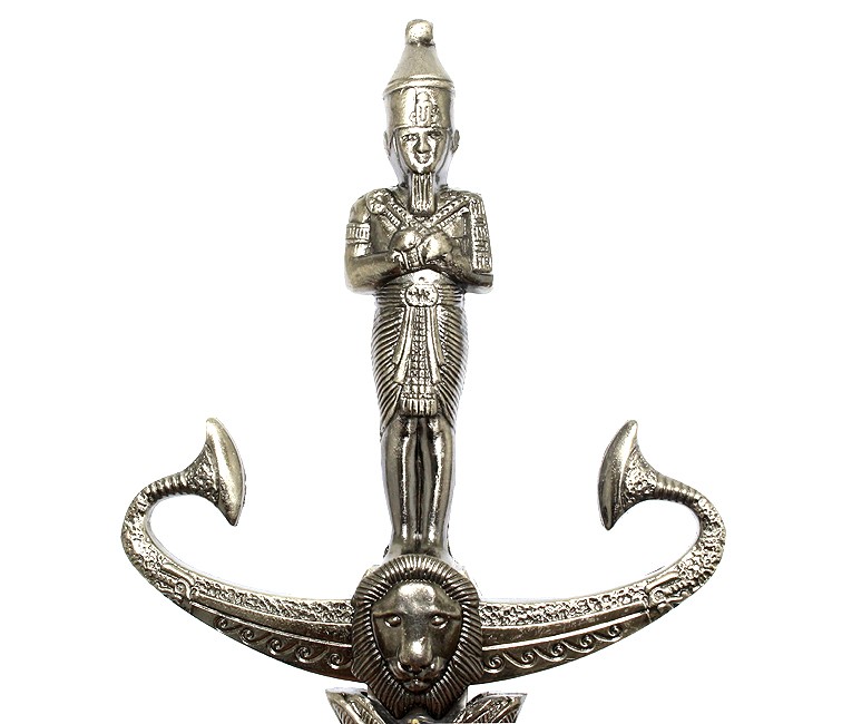 13.5" Male Egyptian Knife Kriss Dagger. 3.5" Overall Dagger Blade Length: 8" Handle Length: 4.5" Sheath Length: 9" Silver Colored Handle and Sheath Very Detailed Egyptian Dagger Collectible Item None Edge Blade