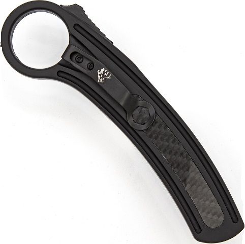 8.75" Black Carbon Fiber Karambit D/A OTF Automatic Knife Red Dagger. Overall Length: 8.75 Inches Blade Length: 3.27 Inches Blade Width: 0.60 Inch Blade Thickness: 2.62 mm Blade Style: Dagger Point Blade Construction: Steel Handle Construction: Zinc Aluminum with Carbon Fiber Inlay Handle Length: 5.77 Inches Includes: Black Nylon Sheath Features: Karambit style, Automatic knife