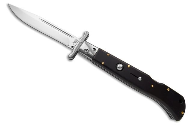 AKC 11" Roma Automatic Swinguard Ebony Wood. 11 inches overall length 4.5" blade length stainless steel. A big heavy automatic knife from italy. These are getting very rare and hard to get. Get yours before they are all gone forever. ROMA is a new swinguard from AKC World is a new line of italian knives designed in Italy. These are excellent quality knives with Italian style. Very nice shape and good mechanism. Nice for any collection but also as fancy pocket knife. Price quality range is very good. Overall lenght: 28cm – 10,90" Blade Lenght: 11,7cm – 4,60" Blade Thickness: 0,3cm – 0,11" Weight: 195gr - 7oz Blade Material: AISI 420 stainless steel Handle Material: Ebony Wood Frame material: AISI 420 stainless steel Made in: China