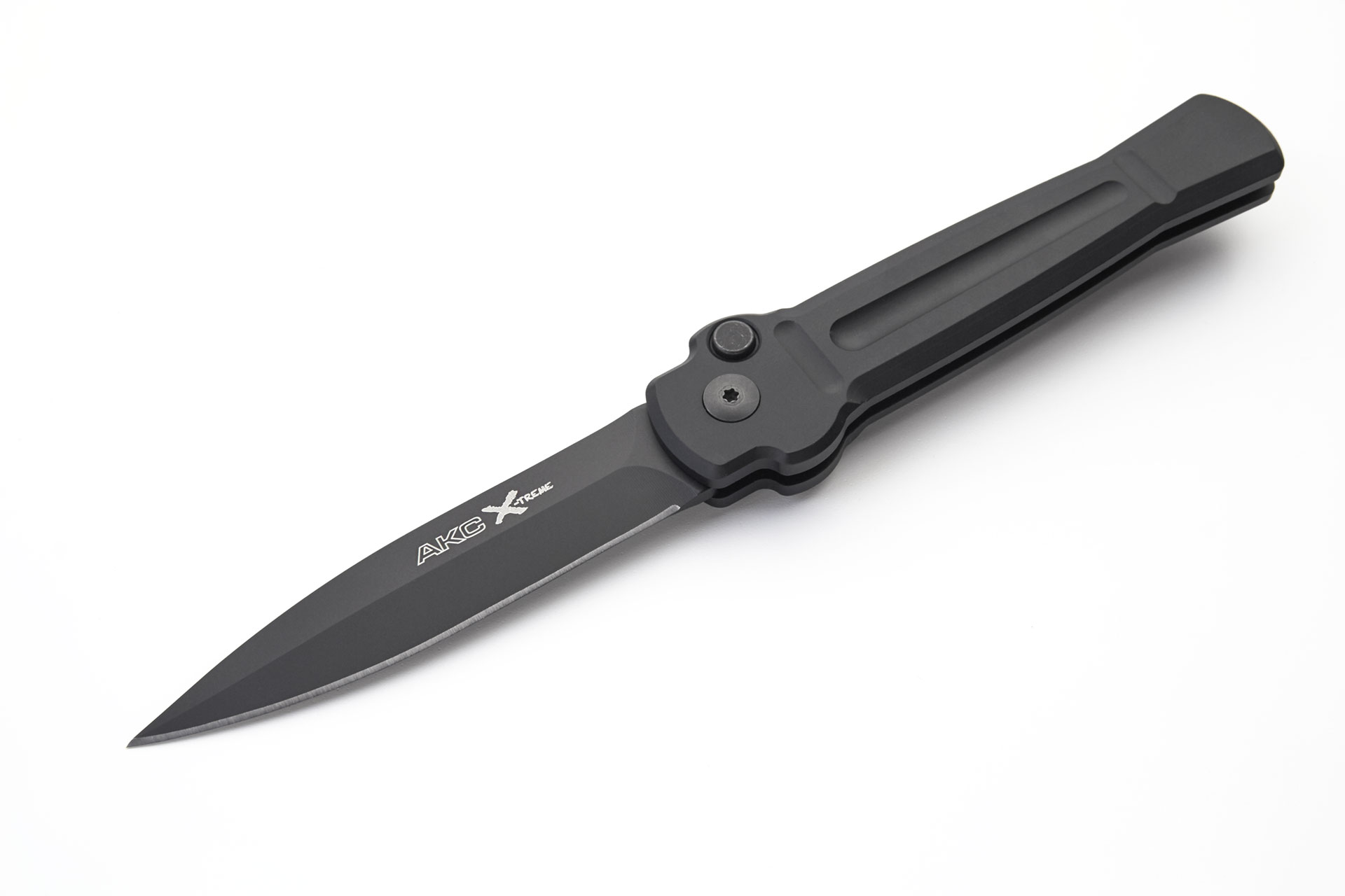 The AKC X-TREME made with modern materials and an aggressive italian design. This new automatic model "ACE" features a CNC worked 6061-T6 aircraft aluminium handle in black. The blade on this switchblade is made of AUS-8 japanese steel with a HRC of 58-59 and has a PVD coated finish. It includes a tip up clip for the belt. The "ACE" from AKC X-TREME is very nice and light EDC. Overall Length: 21.5cm - 8.5" Blade Length: 9.5cm - 3.7" Weight: 105gr - 3.7ozBlade Material: AUS-8 Japanese Steel Handle Material: Aluminium Made in: Taiwan