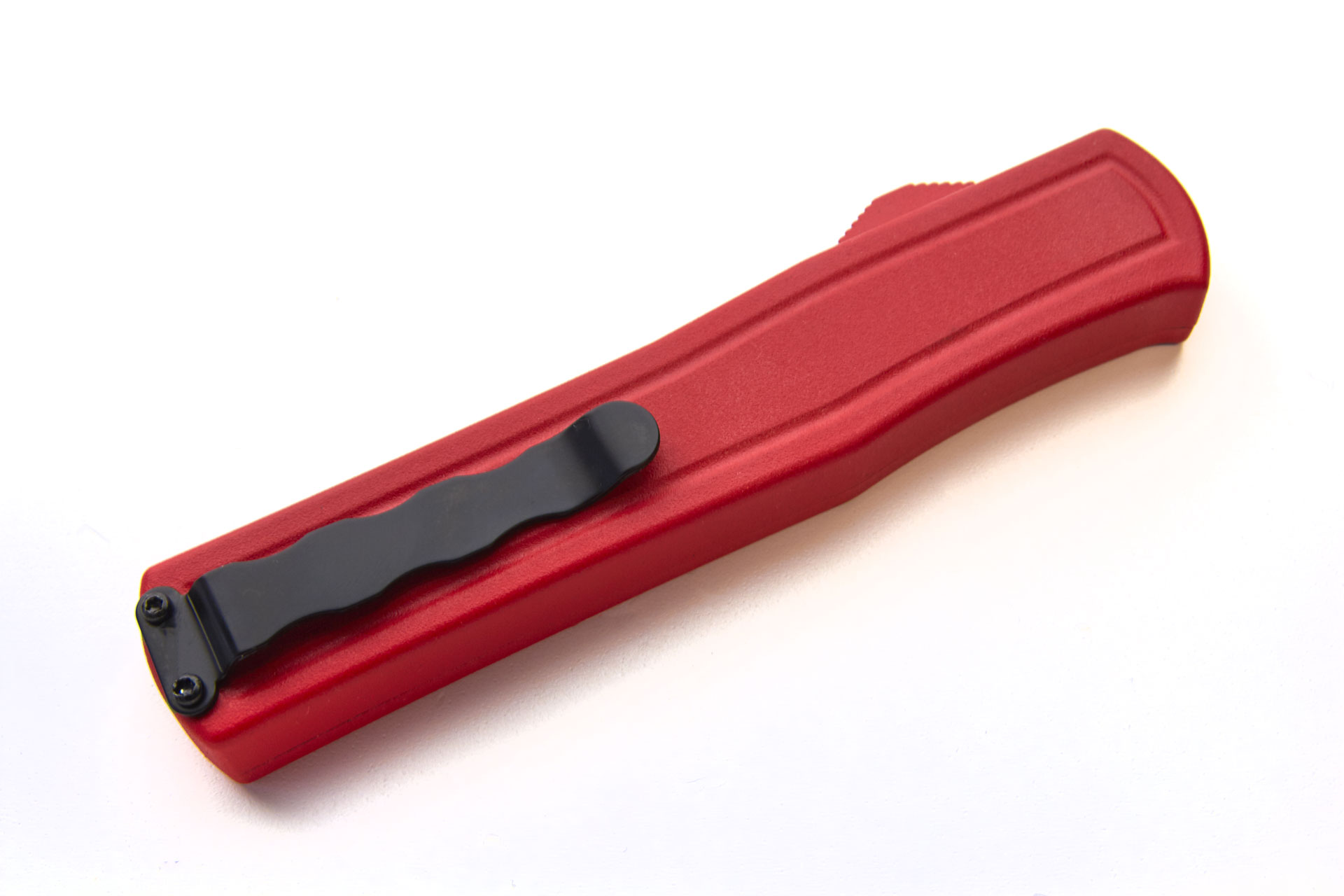 This new great ergonomic OTF from AKC Italy F20 is excellent quality. It is 0.5" (1.3cm) longer than it's smaller brother the F16. The ergonomic handle on this automatic switchblade is made of aluminium with black sandpaper insert for a safe grip. The razor sharp particular 440A steel drop point blade has a very nice grind and comes in satin finish. It has a strong solid mechanism with almost zero blade play. The price quality is the best you can find. You will not be disappointed with it! Overall Length: 21.3cm - 8.4" Blade Length: 9.3cm - 3.6" Weight: 105g - 3.7ozBlade Material: 440A Stainless Steel Handle Material: Aluminium Inlay Material: Sandpaper