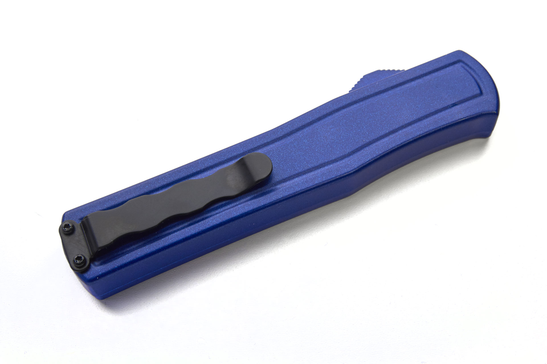 This new great ergonomic OTF from AKC Italy F20 is excellent quality. It is 0.5" (1.3cm) longer than it's smaller brother the F16. The ergonomic handle on this automatic switchblade is made of aluminium with black sandpaper insert for a safe grip. The razor sharp particular 440A steel drop point blade has a very nice grind and comes in satin finish. It has a strong solid mechanism with almost zero blade play. The price quality is the best you can find. You will not be disappointed with it! Overall Length: 21.3cm - 8.4" Blade Length: 9.3cm - 3.6" Weight: 105g - 3.7ozBlade Material: 440A Stainless Steel Handle Material: Aluminium Inlay Material: Sandpaper