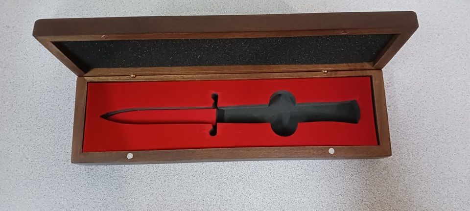 Carry your precious Italian collection stilettos with style and security in this magnificent artisanal wooden box. Carefully crafted by artisans, this exquisite box is a unique work of art. It is designed to accommodate knives with sizes 23 cm, and 28 cm. The elegant and compact box protects your favorite stiletto, ensuring its safety and accessibility. With the renowned AKC brand, synonymous with quality in the world of Italian knives, this box is an ideal choice for knife enthusiasts or a sophisticated gift. KNIFE IS NOT INCLUDED Overall Length: 19cm - 7.48" Internal Length: 16.1cm - 6,34" Width: 6.6cm - 2.5" Internal Width: 3.7cm - 1,457" Weight: 240gr - 8.465oz The foam knife insert can be pulled out to have an empty box for more than one knife.