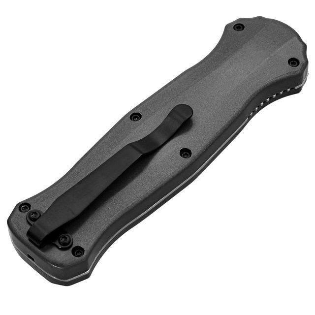 Balls Deep Automatic Dual Action Out The Front Knife with Belt Clip and Sheath. This lightning fast double action knife boasts a ferocious dagger blade crafted from high-quality stainless steel, ensuring clean cuts and unwavering performance. The textured zinc alloy handle offers a secure grip, even in demanding situations. Automatic Out the Front Deployment: Speedy blade deployment for immediate action. Unique Blade Fuller: Reduces weight for faster action without sacrificing piercing power. Textured Zinc Alloy Handle: Provides a confident and comfortable grip during use. Black Nylon Sheath: Ensures discreet and secure carrying.