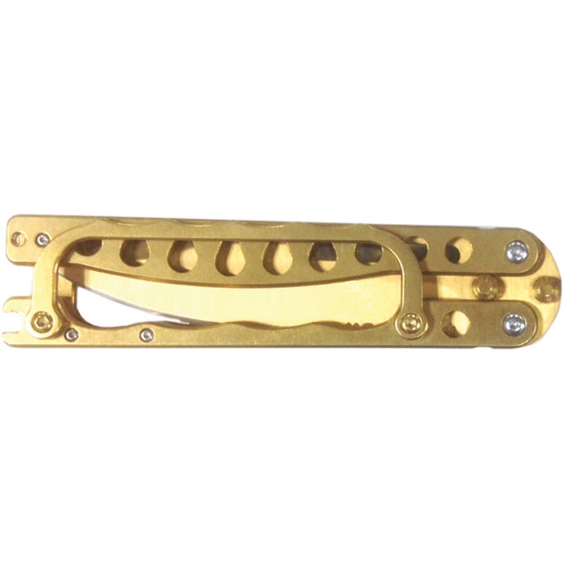 Heavy duty well built knuckle butterfly knife. All metal 440 stainless steel super sharp serrated blade. 5 inch blade 11 inches overall length 6 inch handle. Comes with a belt knife sheath. This knuckle knife has a metal knuckle guard screwed onto the handle for easy removal if you dont want it attached.