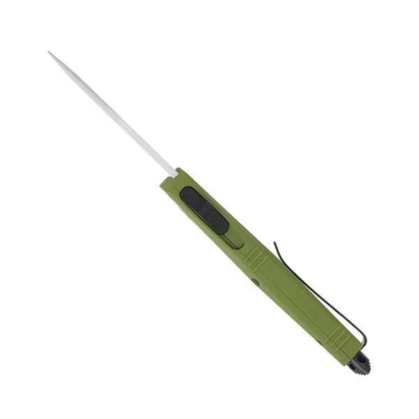 CobraTec FS-3 OD Green Auto, 2.75" D2 Drop Blade, Cerakote Handle. Our small FS-3 OD Green starts from a high-grade aluminum alloy handle and features a high quality D2 steel blade. All knives are dual action (blade deployment and retraction are powered by pushing or pulling the same control switch). The knife is ambidextrous as the pocket clip can be switched to either side allowing for RH and LH use. This knife features a pocket clip, a glass breaker for emergencies and includes a nylon sheath. All CobraTec Knives are backed by our LIFETIME WARRANTY. 4.5 ounces Dual Action OTF 2.75 inch D2 Steel Blade 4.25 inch high-grade aluminum alloy handle 7 inches in total length with glass breaker