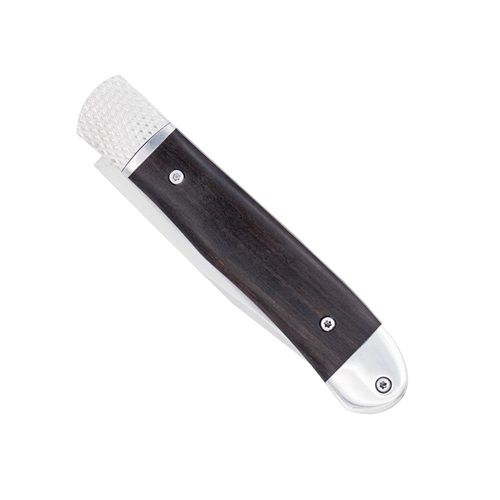 The Patent Pending Trapper hidden release with ebony wood scales and a D2 blade is a premium and innovative folding knife that combines style, durability, and practicality. It is designed to be a sleek and sophisticated everyday carry (EDC) tool for knife enthusiasts and collectors alike. The blade is crafted from high-quality D2 steel, known for its excellent edge retention, corrosion resistance, and toughness. This ensures that the Trapper hidden release remains sharp and reliable even after prolonged use. The defining feature of this knife is the hidden release mechanism, cleverly integrated into the bolster of the knife. With a discreet push or flick of the bolster, the blade swiftly and smoothly deploys into the fully locked position, ready for action. This hidden release design not only adds an element of surprise but also ensures a safe and secure operation, as accidental openings are minimized. For enhanced aesthetics, the Trapper features ebony wood scales on the handle. The ergonomic design of the handle provides a comfortable and secure grip, promoting precise control and ease of use during various cutting tasks. The Trapper hidden release with ebony wood scales and D2 blade is a testament to the fusion of cutting-edge technology, premium materials, and meticulous craftsmanship. Whether for everyday carry or as a stylish collector's piece, this knife promises to be a reliable companion that excels in performance and elevates your overall knife experience. AnchorAll CobraTec OTF knives are backed by our LIFETIME WARRANTY. Trapper Hidden Release Specifications: Patent Pending D2 Blade Ebony Wood Scales 3.125 Inch Blade 4.25 Inch Handle 7.375 Inches Overall Bolster Hidden Release Weight 4 Ounces