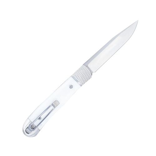 the Patent Pending Trapper Hidden Release White Abalone Knife, a masterpiece that seamlessly blends elegance and functionality. This exquisite knife features a unique hidden release mechanism ingeniously concealed within its bolster, ensuring a sleek and unobtrusive appearance. Crafted with unparalleled precision, this Trapper Hidden Release Knife is the epitome of sophistication. The Trapper Hidden Release White Abalone Knife boasts a razor-sharp blade made from premium 154CM stainless steel. Renowned for its exceptional edge retention and corrosion resistance, the 154CM blade guarantees a reliable cutting experience, whether for everyday tasks or specialized use. Its versatility makes it a preferred choice among professionals and enthusiasts alike. The hidden release mechanism, nestled seamlessly within the bolster, adds an air of mystique to the knife. The bolster itself is exquisitely designed, providing a secure grip and enhancing the knife's overall appeal. The hidden release feature allows for swift and effortless deployment of the blade, making it perfect for those seeking quick and discreet access to their tool. Whether you're a collector of fine knives or an adventurer who values a dependable companion, the Trapper Hidden Release Knife with its White Abalone handle and 154CM blade is sure to captivate your senses and elevate your cutting experience to an unparalleled level. It is a symbol of artistry, craftsmanship, and practicality, making it an exceptional addition to any knife enthusiast's collection. All CobraTec OTF knives are backed by our LIFETIME WARRANTY. Trapper Hidden Release Specifications: Patent Pending 154CM Blade White Abalone Scales 3.125 Inch Blade 4.25 Inch Handle 7.375 Inches Overall Bolster Hidden Release Weight 4 Ounces