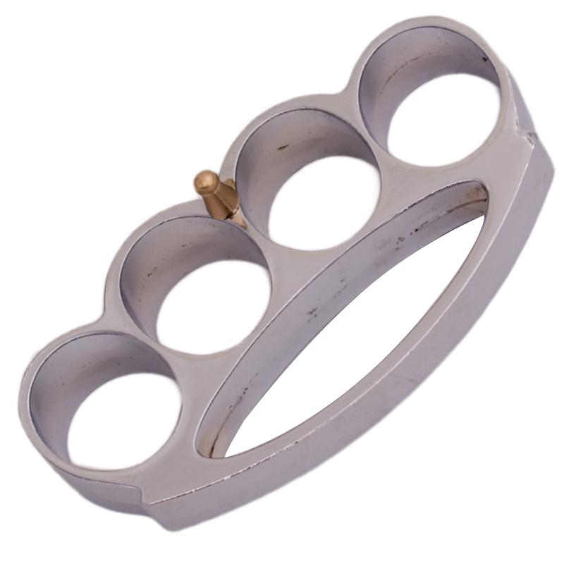 Fat Boy Brass Knuckles Silver Belt Buckle Paperweight. Weight =5.9 oz Hole Diameter= 1.3 inch Length = 4.4 inch Width = 2.2 inch Thickness = 0.7 inch