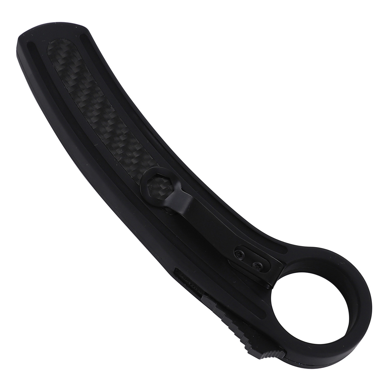 Gangster Black Carbon Fiber D/A OTF Automatic Knife Karambit 2 Tone. Overall Length: 8.125 inches, Blade Length: 2.375 inches.