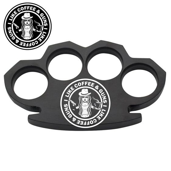Gunbucks I Love Guns Steam Punk Black Solid Metal Paper Weight. Product Features Weighs in at 10 Ounces Length: 4.5" Width: 2.75" 0.5 an inch of thickness Solid Black Steel with engraving Product Description This item is made of solid Black Steel. This item has a overall length of 5 inches and a width of 3 inches. It has a black smooth matte finish. Huge holes with a diameter of an inch.