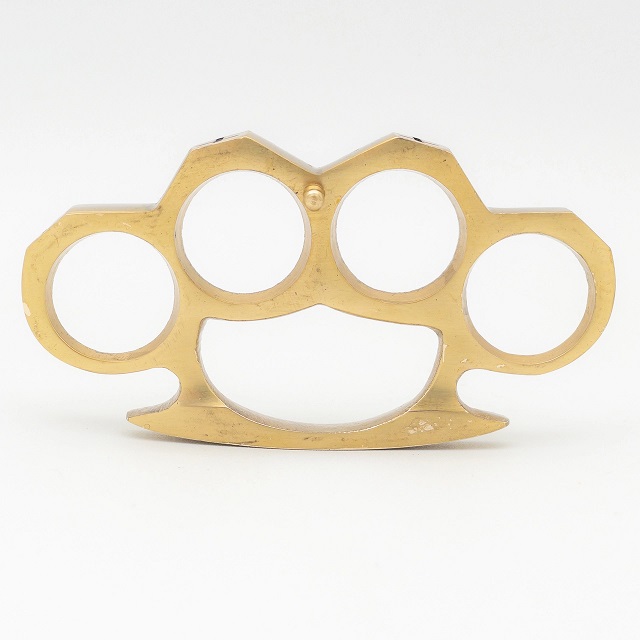 Holy Cross Brass Knuckles Paperweight Duster. These knuckle dusters are made from 100% pure brass. Black crosses are deeply engraved into the knuckles. Overall Length: 2.5 inches, Overall Width: 4.35 inches