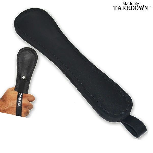 This leather slap comes with a handle built into it and is 11 inches long. Great item for defensive measures.