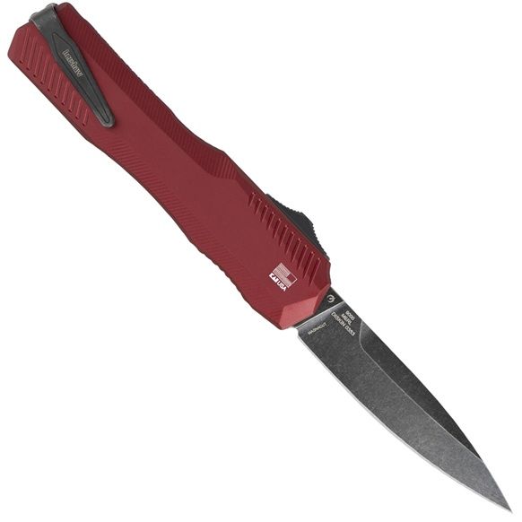 Kershaw Livewire Napa D/A OTF Automatic Knife Merlo 6061-T6 Aluminum (3.3" BW). Few knives garner as much excitement as out-the-front automatics. After significant research, careful development, and rigorous testing, in-house designers and custom knifemaker Matt Diskin deliver Kershaw's first OTF auto: the Livewire. The premium CPM MagnaCut blade features superior edge retention and opens and retracts with authority. The black-anodized aluminum handle is textured for a secure grip. And its curved, staircase-like button feels comfortable on the thumb for reliable deployment. When closed, this knife is a joy to carry thanks to its reversible deep-carry clip and light weight. Fans have been asking for it, and the Livewire is every bit worth the wait. Made-in-the-USA out-the-front automatic; Kershaw Originals and Matt Diskin design Premium CPM MagnaCut powdered metallurgy blade steel excels in edge retention, toughness, and corrosion resistance; stonewashed finish helps hide use scratches Black-anodized aluminum handle, lightweight strength; texturing enhances grip Deep-carry pocket clip is easily reversible for left/right carry. Features + Details Status Bestseller Edition Engravable Use Tactical Type Out-The-Front Automatic Style Pocketknife Designer Kershaw Originals & Matt Diskin Blade Style Spear Point Blade Edge Plain Opening Action Automatic Opens With Sliding button Lock Type OTF internal lock Pocketclip Reversible deep-carry (right/left, tip down) Handle Color Black Hardware Black-oxide steel screws, black Cerakote pocketclip Country of Origin USA: Design, Prototype, Quality Control, Manufacture Warranty Limited Lifetime Warranty Specifications Blade Length 3.3 in. (8.4 cm) Blade Material CPM MagnaCut HRC 62-64 Blade Finish/Coating Blackwashed finish Blade Thickness 0.125 in. (3.2 mm) Closed Length 4.8 in. (12.2 cm) Handle Material 6061-T6 aluminum Handle Finish/Coating Merlot anodized Handle Thickness 0.49 in. (12.4 mm) Overall Length 8.1 in. (20.6 cm) Weight 3 oz. (85 g)