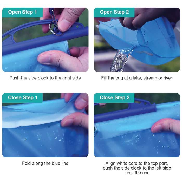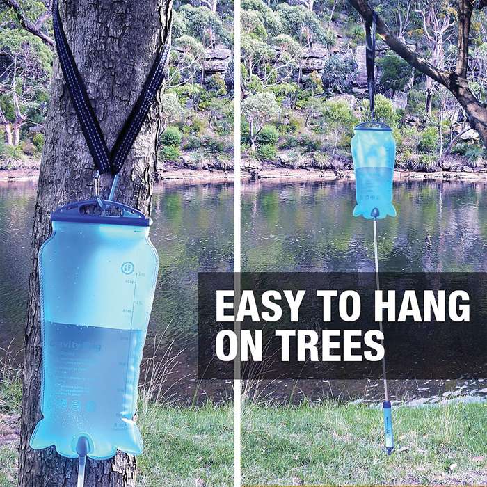 The Membrane Solutions Three-Liter Gravity Water Filter Bag With Straw is easy to use and has a three-stage filtration system. Just pour water in the top of the bag, hang it up and clean water comes out of the bottom, with gravity doing all the work. The straw filtration system consists of a hollow fiber membrane with a 0.1 micron pore size that removes 99.999999% of bacteria, protozoa and micro-plastics; a carbon fiber capsule improves taste while reducing lead, other heavy metals, chlorine and organic chemical matter; and PP cotton with 0.2 micron terminal filtration that reduces activated carbon powder leakage and ensures turbidity of water. By the way, the straw filter exceeds US EPA drinking water standards for bacteria and parasites, and it exceeds NSF 53 standard for reduction of lead and other heavy metals. It will filter up to 5,000 liters (1,320 gallons) of contaminated water and the straw is built out of food-grade, BPA-Free ABS. The three-liter gravity bag is made of food-grade TPU and the 29 1/2” connection tube is made of food-grade silicone, and it has a check valve. Aside from using the filter straw and gravity bag together, you can also put the straw directly into the water source and drink through it or you can connect the filter straw to a beverage bottle with the included multipurpose adapter. The Membrane Solutions Three-Liter Gravity Water Filter Bag comes with a carabiner with a tree strap for hanging.