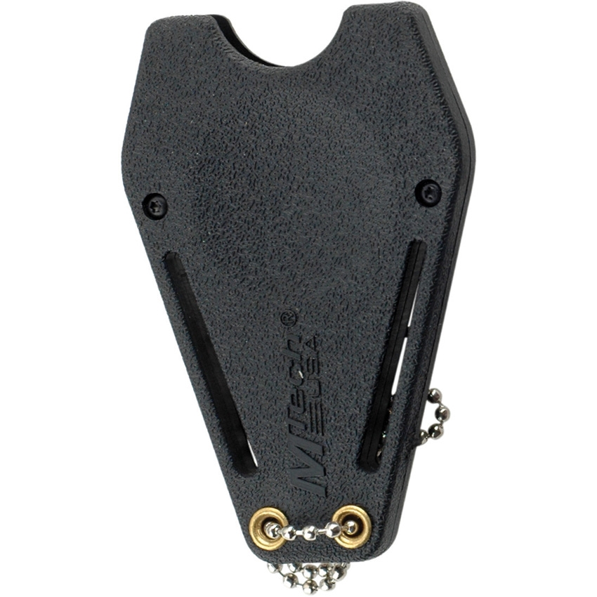 Mtech Finger Hole Black Bottle Opener Neck Knife. 4.5" overall. 1.5" black finish double edge 440 stainless dagger blade. Finger ring. One piece skeletonized construction. Bottle opener. Black Kydex neck sheath.