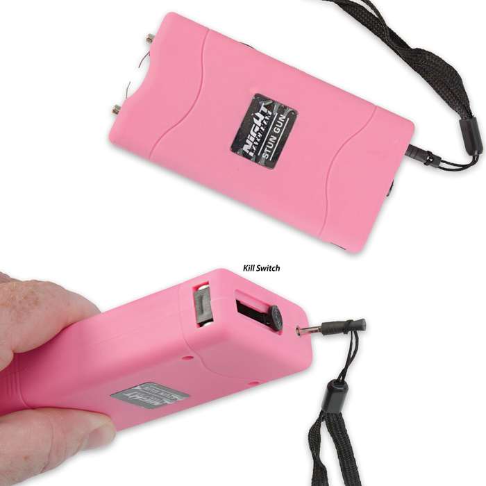Night Watchman's 2 1/2 Million Volt Pink Stun Gun will jolt any assailant who dares to accost you! With 2 1/2 million shocking volts of electricity behind it, this stun gun means serious business. It also features an LED flashlight, and it's the perfect size to carry discreetly in your pocket. 2,500,000v of electricity Dual stunning probes Built-in LED flashlight Retractable wall plug-in Wrist lanyard safety pin