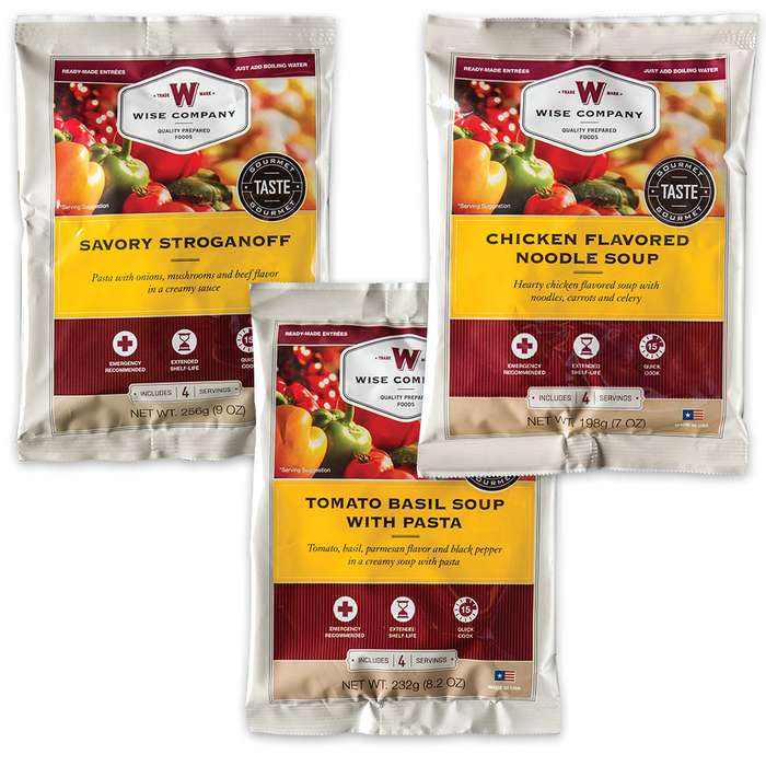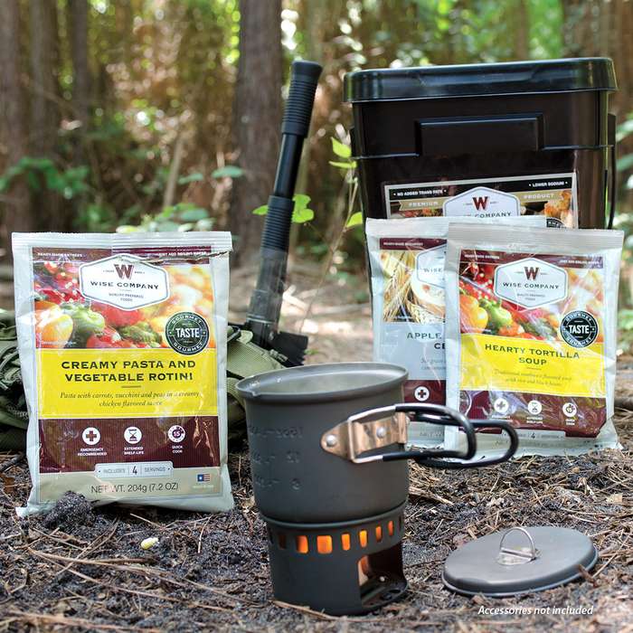 Enjoy 60 servings of hearty, nutritious and delicious entrees with this ReadyWise Food Company Grab-and-Go Gourmet Food Bucket. Each meal is made up of both freeze-dried and dehydrated components sealed in Mylar pouches. Simply add water and heat to enjoy the delicious ready-to-eat meal! There are two servings per day (entrees only) for one adult for a month or four adults for a week. These entrees have a 25+ year shelf life and are made in the USA. The bucket contains a variety of meals including savory stroganoff, pasta alfredo, chili macaroni, teriyaki rice, creamy a la king and rice, creamy tomato basil, loaded baked potato casserole and creamy vegetable rotini.