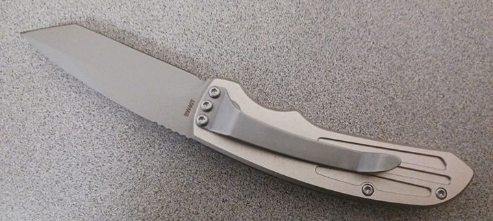 Smith & Wesson Extreme Ops Champagne Automatic Knife 2.5" Tanto SW40T. Nice contour and weight, will fit perfectly in your hand. Comes with a pocket clip. Blade length 2.5" 7Cr17MoV Total length 6 Inches