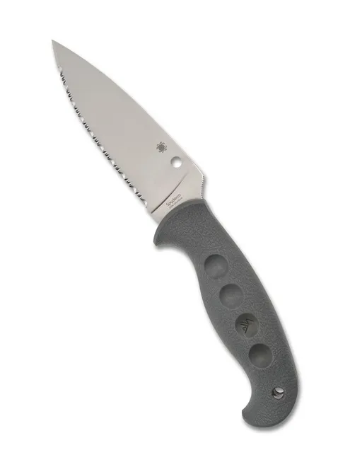Spyderco Temperance Sprint Run Serrated Cru Wear Blade Gray FRN FB05SGY. Designed by Spyderco co-founder Sal Glesser, the Temperance™ was one of our earliest fixed-blade models. Now this classic design is back as a limited-edition Sprint Run®, showcasing a gray-colored fiberglass-reinforced-nylon (FRN) handle and a full-flat-ground blade crafted from CPM® CRU-WEAR® tool steel. Specially formulated to offer both superior wear resistance and toughness, CRU-WEAR’s advanced alloy composition is further enhanced by the Crucible Particle Metallurgy (CPM) process to ensure an ultra-fine, extremely homogeneous grain structure. Faithful to the original, the knife’s ergonomic handle is injection molded directly onto the tang of the blade and features a series of bilateral “dimples” to enhance its texture and provide pivot points for grip-change maneuvers. This remarkable resurrection of the Temperance is available in both PlainEdge™ and fully serrated SpyderEdge™ configurations. Both include a custom-molded Boltaron® sheath with a versatile G-Clip™ attachment that supports both belt and inside-the-waistband carry. Technical Specifications Overall Length: 9.42in 239mm Closed Length: in mm Blade Thickness: .157in 4mm Tip Carry Position: N/A Sheath: Boltaron Blade Length: 4.46in 113mm Edge Length: 4.15in 105mm Handle Material: FRN Lock Type: N/A Origin: Japan Steel: CPM® Cru-Wear® Knife Weight: 5.4oz 153g Clip Position: N/A Grind: Full-Flat