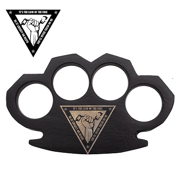 Land of The Free Steam Punk Black Metal Paper Weight. Weighs in at 10 Ounces Length: 4.5" Width: 2.75" 0.5 an inch of thickness Solid Black Steel with land of the free engraving. Huge holes with a diameter of an inch.