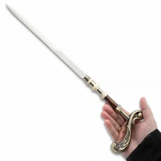 Steampunk Swagger Stick Sword Cane (36.75" Overall). Unveil the elegance and utility of the Steampunk Swagger Stick Sword Cane - a true masterpiece that seamlessly combines style and self-defense. This stunning sword cane stands tall at 36 ¾”, providing an air of grandeur while concealing the sword with the included black metal sheath. The satin-finished blade gleams with a subtle sheen. Adorned with a captivating intricate motif on each side of the opulent gold-colored handle, this cane is a true work of artistry. Under the handle showcases intricate wood inlay, adorned with gold etchings that add an extra layer of sophistication to this remarkable piece. Designed for comfort and control, the ergonomic grip ensures a secure hold, allowing you to wield this sword cane with confidence. A stylish accessory that doubles as a self-defense tool. Gold-colored handle with intricate motifs on both sides. Wood inlay with gold etchings for a unique touch. Ergonomic grip ensures a secure and comfortable grasp. Includes a black metal sheath for blade protection.