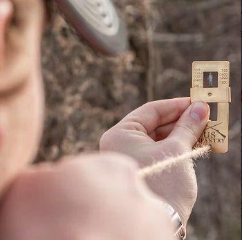 Trailblazer US Infantry Range Finder Solid Brass. Before there were fancy scopes that do everything but talk, real men used range finders to find the distance of an object It has a solid brass construction with a slide and the exact length of twine string attached to take your measurements This authentic reproduction range finder is based on an object height of six feet and is incremented from 50 to 800 yards At only 3”x 1 1/4”, it’s compact and lightweight so that it takes up almost no room in your gear or backpack